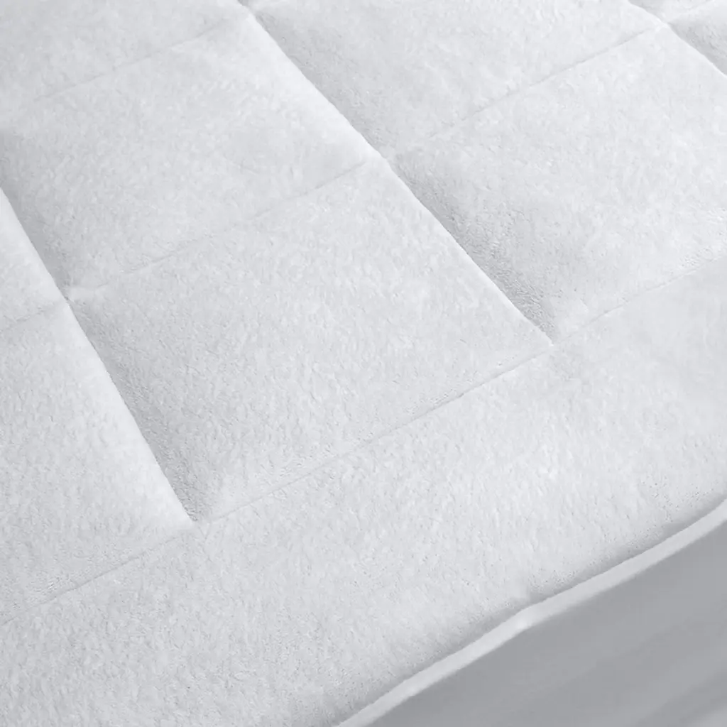 Our supreme LoftWorks Microplush Mattress Pad combines the ultimate sleep experience in warmth, comfort and mattress protection we can offer. Our Microplush Mattress Pad not only offers classic style with a supremely soft, warm and luxurious Microplush top, but is generously over-filled to add that extra layer of softness for all seasons while, at the same time, always providing a protective layer to your mattress. Our microplush mattress pad has a sewn-through box quilt stitch to be sure fiber stays in place for a soft, cloud-like sleep. The stretchy skirt fits mattresses up to 15-18" deep. Hypoallergenic and Machine washable for easy care.