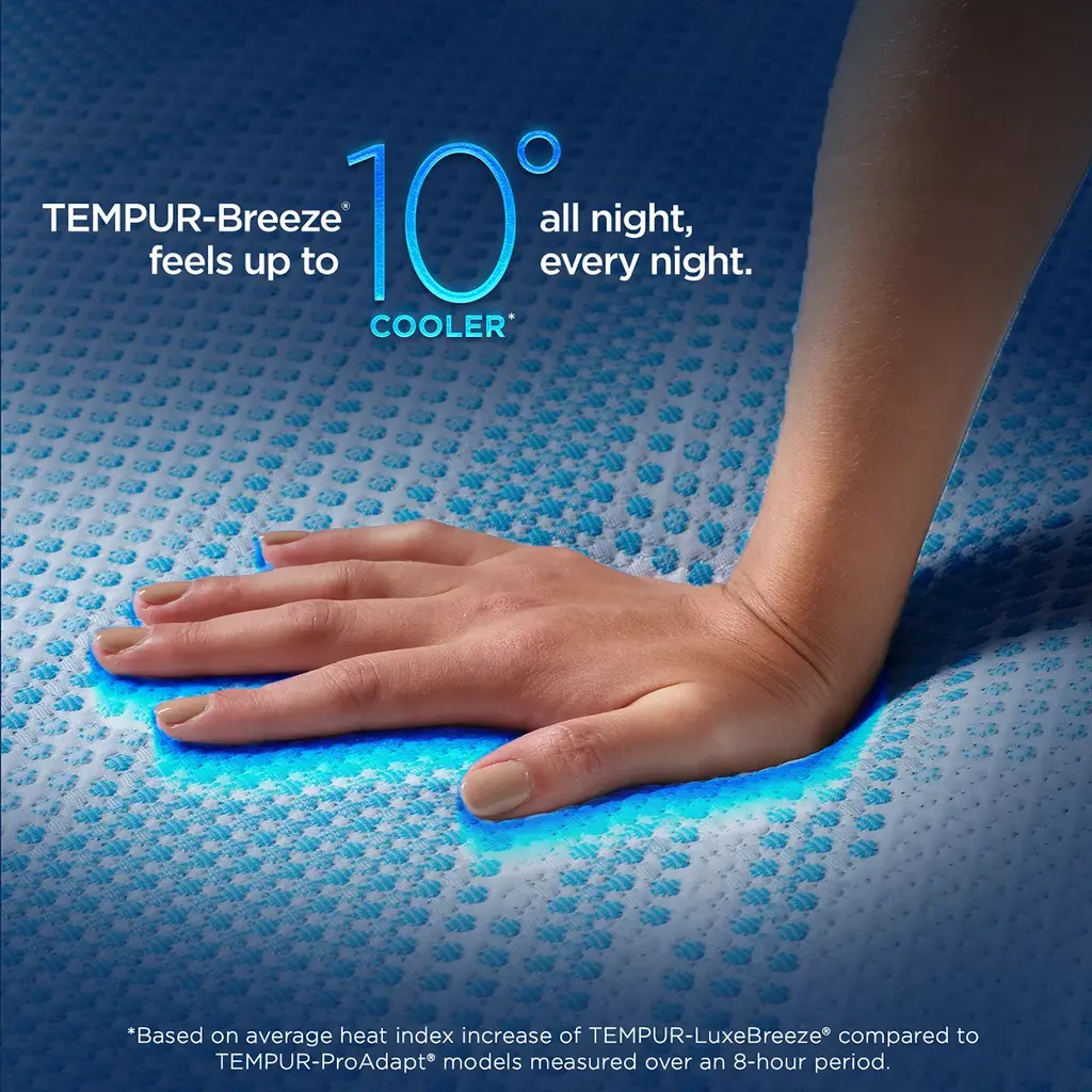 The TEMPUR-LuxeBreeze® Soft mattress feels up to 10° cooler.* Featuring our newest and most advanced Pure Cool® Plus material that absorbs and pulls heat away from your body, it works with specialized cool-to-the-touch covers so you stay measurably cooler - all night long.