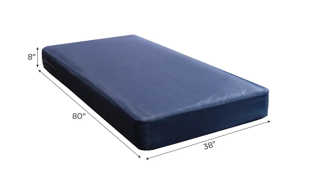 A double sided wrapped coil institutional mattress which is adjustable bed friendly and water resistant. The commerical grade foam and blue nylon vinyl material offers a medium firm feel.