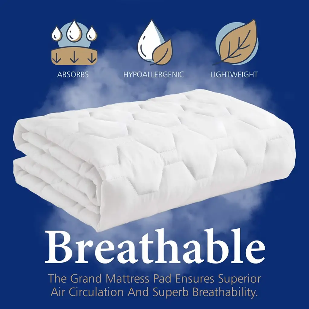 Our Grand Mattress pad is exactly that: grand! Our polyester and cotton blend top offers a smooth, soft feel. This mattress pad is a great choice for people who have allergies With its deep pockets and generously sized corners, this mattress pad will offer a perfect fit every time. It will stay securely on the bed, without bunching, and your sheets wont slip off the corners like most