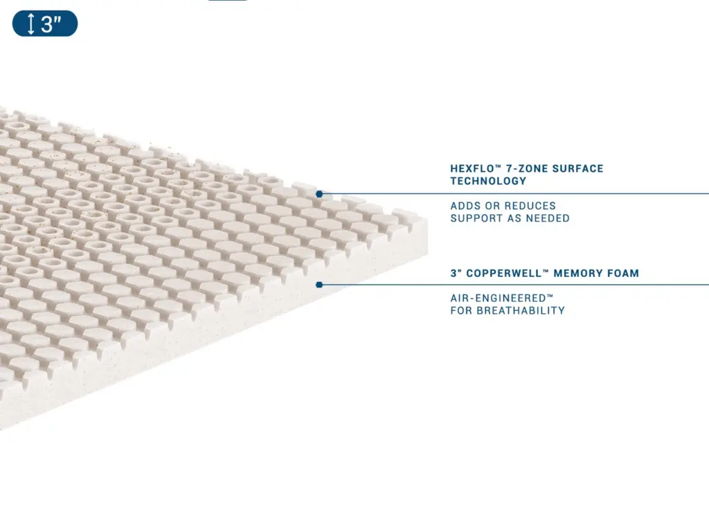 Molecule Copperwell Gel Memory Foam 3 Inch King Mattress Topper With Hexflo Zoned Support