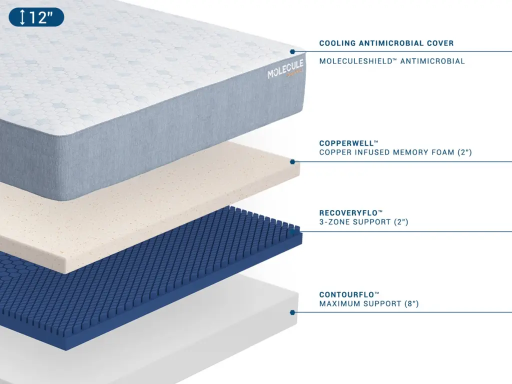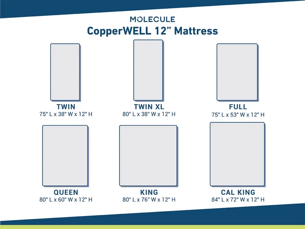 The MOLECULE CopperWELL 12-inch mattress improves sleep quality with copper-infused gel memory foam, providing the perfect blend of pressure relief and support. Its open cell foam structure enhances breathability while copper pulls away heat for the ideal sleep temperature. Memory foam delivers ample support in key pressure point areas, gently pushing back to the areas that need extra uplift. Targeted support helps keep your body in alignment for deeper, more restorative sleep. MOLECULE is tested and approved by the world's elite athletes, including Alex Morgan and Michael Phelps, helping them rest and recover while they sleep so they can maximize their performance during the day. Sleep like a Champion. Sleep on MOLECULE.