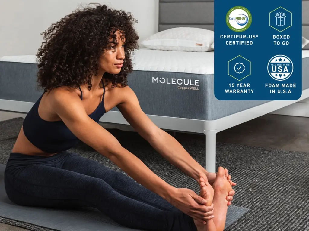 The MOLECULE CopperWELL 12-inch mattress improves sleep quality with copper-infused gel memory foam, providing the perfect blend of pressure relief and support. Its open cell foam structure enhances breathability while copper pulls away heat for the ideal sleep temperature. Memory foam delivers ample support in key pressure point areas, gently pushing back to the areas that need extra uplift. Targeted support helps keep your body in alignment for deeper, more restorative sleep. MOLECULE is tested and approved by the world's elite athletes, including Alex Morgan and Michael Phelps, helping them rest and recover while they sleep so they can maximize their performance during the day. Sleep like a Champion. Sleep on MOLECULE.