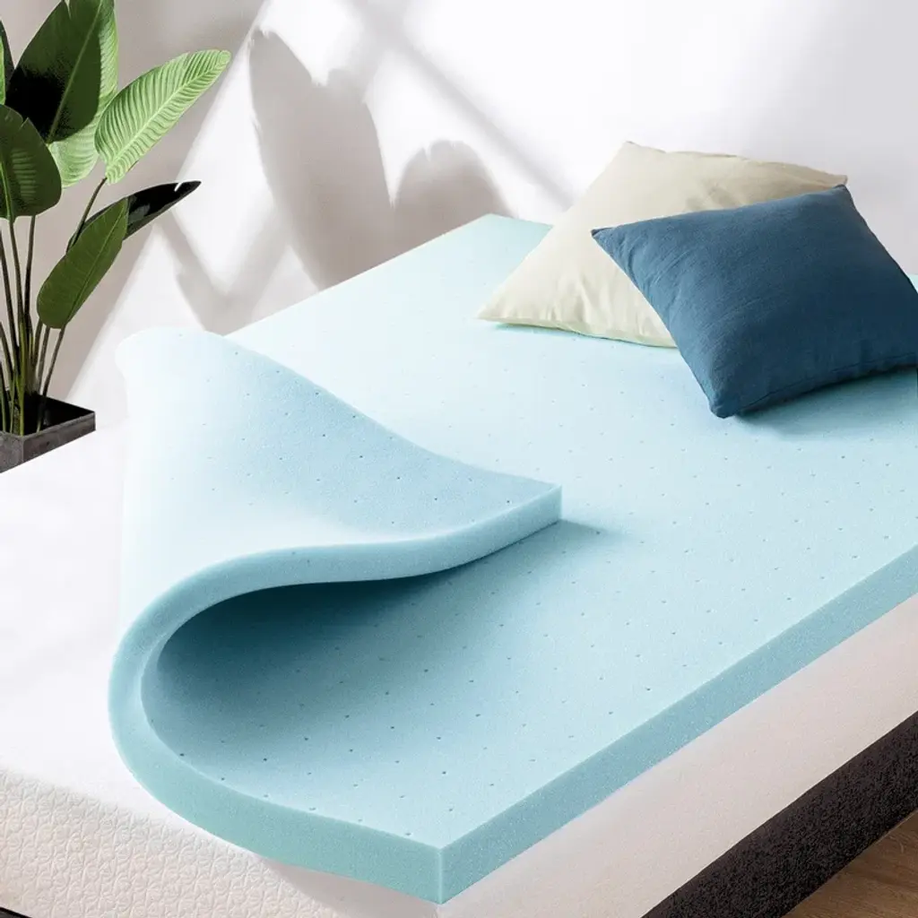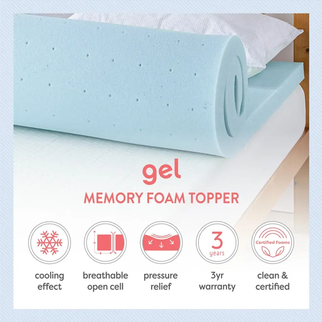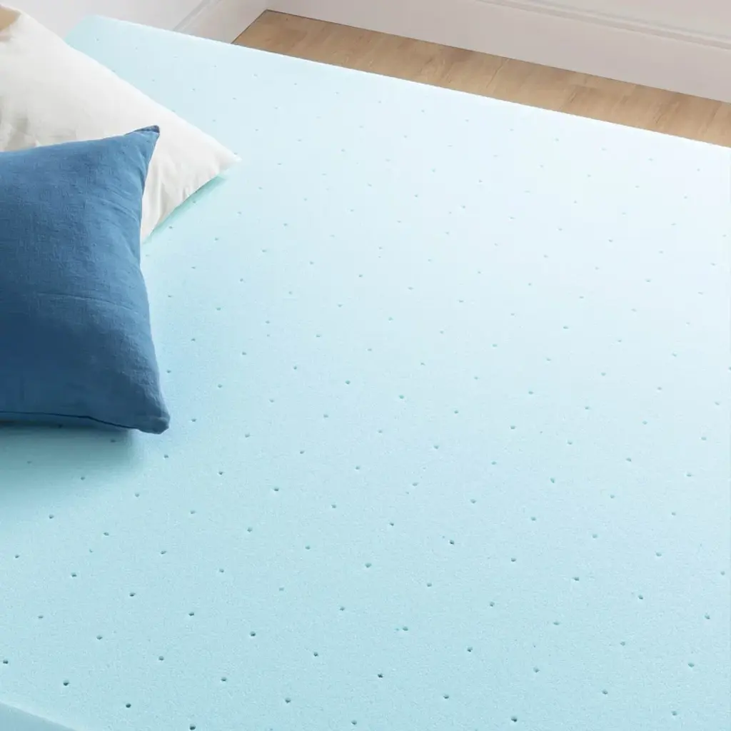 Breathe new life into your bedding with this plush memory foam mattress topper. Designed to relieve pressure and cradle your curves as you’re catching some Z’s, this mattress topper is made from 3" of medium-firm memory foam. It's infused with temperature-mediating gel that gives it a breathable, ventilated design to help improve air circulation and promote a more comfortable sleep. We also love how this piece is hypoallergenic. This topper is slightly smaller than standard bed sizes, allowing it to fit right under your fitted sheet.