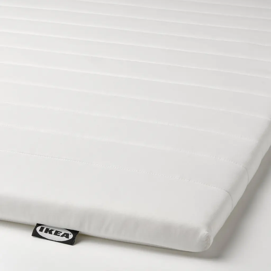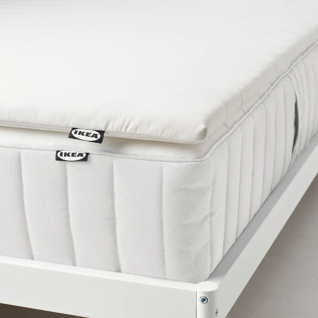 NÄSFJÄLLET Mattress topper - white King. Standard foam makes this mattress pad supportive and comfortable. Double-sided cover so you can use both sides of the mattress pad. The woven fabric cover is soft and smooth, with added wadding. The cover is removable and can be machine washed.