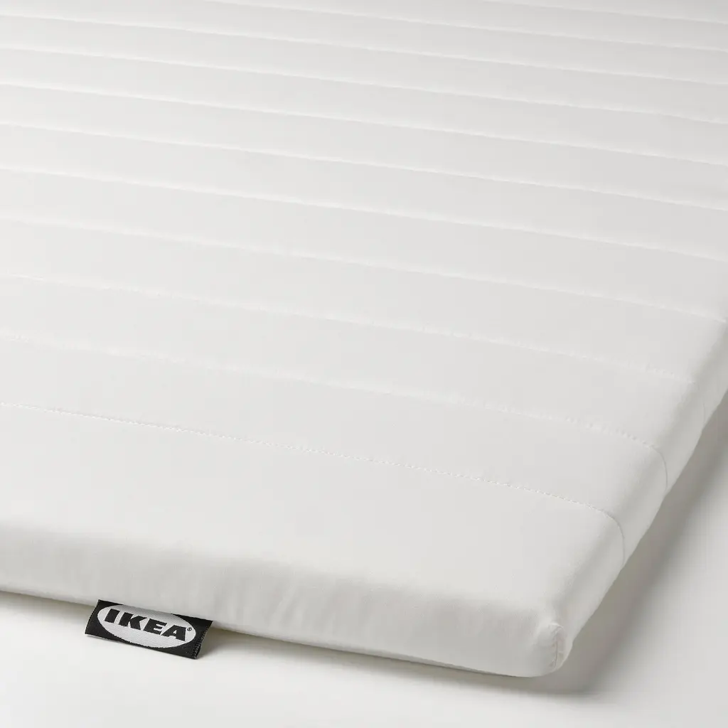 NÄSFJÄLLET Mattress topper - white Twin. Standard foam makes this mattress pad supportive and comfortable. Double-sided cover so you can use both sides of the mattress pad. The woven fabric cover is soft and smooth, with added wadding. The cover is removable and can be machine washed.