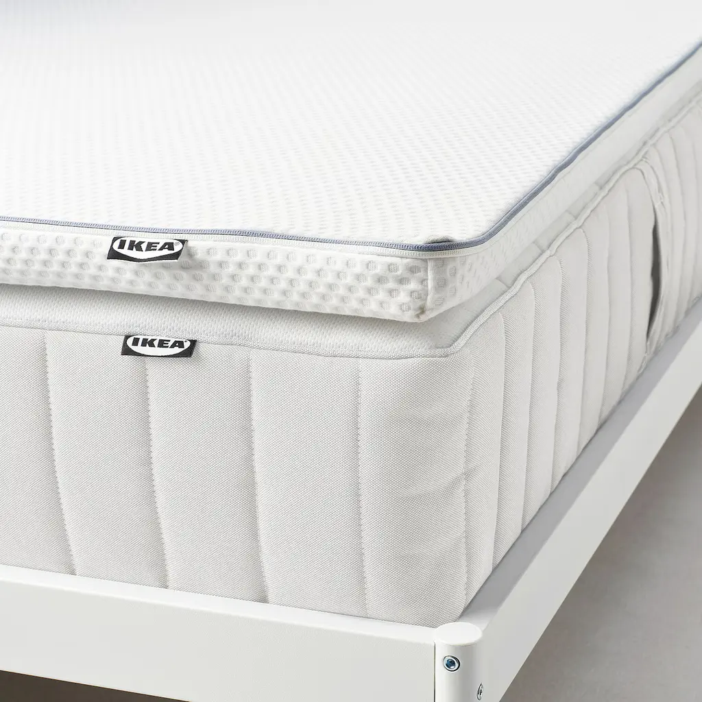 NÄSTABERG Mattress topper - white Twin. The mattress pad has a cooling side that feels pleasantly cool as you drift off to sleep. Embracing memory foam helps to relieve pressure on your spine and joints – and aids blood circulation. Double-sided – one side is cooler and the other is neutral to warm.