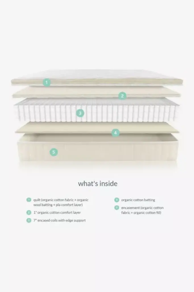 This mattress features organic cotton filling and premium encased coils. The wool batting in the quilt helps with temperature regulation. The mattress ships roll-packed. Naturepedic is a GOTS certified organic mattress manufacturer and has earned the trust of parents and doctors across the county. Winner of numerous prestigious endorsements, Naturepedic organic mattresses meet the highest physical, chemical, and allergenic safety awards. **Content + Care** \- GOTS Certified \- Spot clean only \- Made in U.S.A. with domestic and imported fabric and components **Size + Fit** \- Twin – Queen available