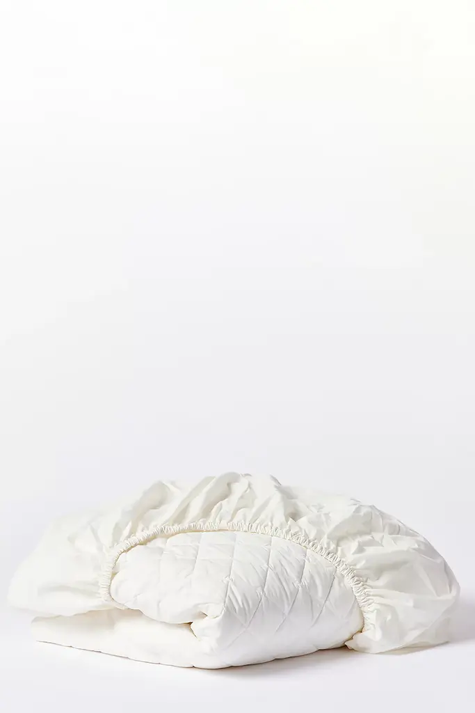 Feel the cushioned embrace of premium organic cotton, from batting to fabric. Two-inch quilted squares are encased in naturally breathable and cooling percale, for natural softness that extends the life of your mattress. 15” deep pockets feature full elastic around the bottom for an easy fit on plush mattresses. Our pure organic cotton pad is free of chemical finishes and flame retardants.
