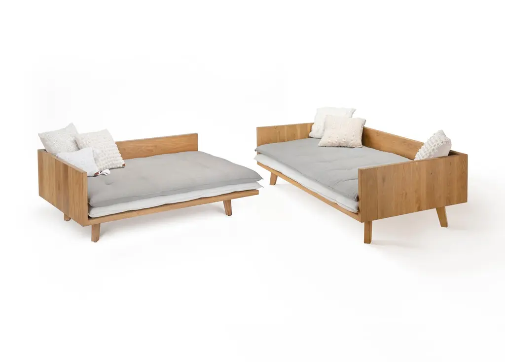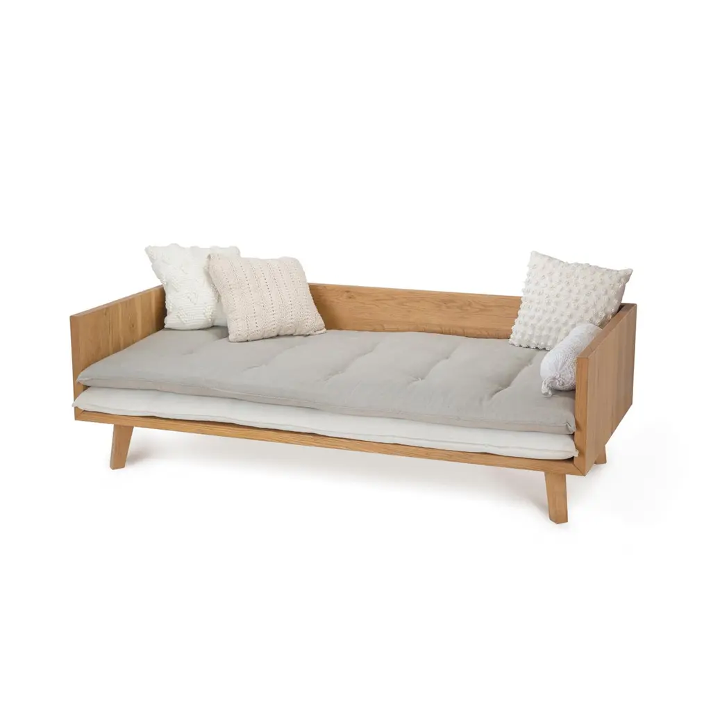 Outdoor Oil-Treated Oak Wood 2 Seater Sofa With Double Mattresses