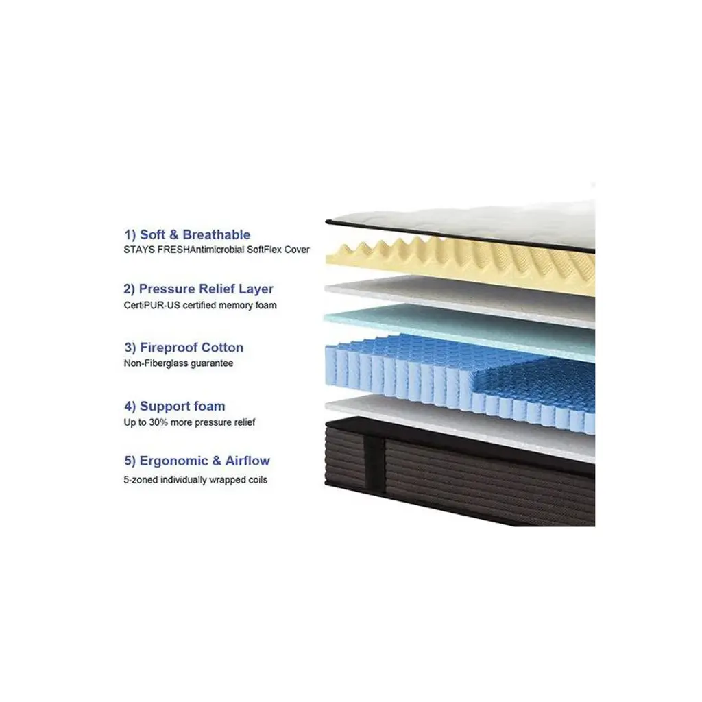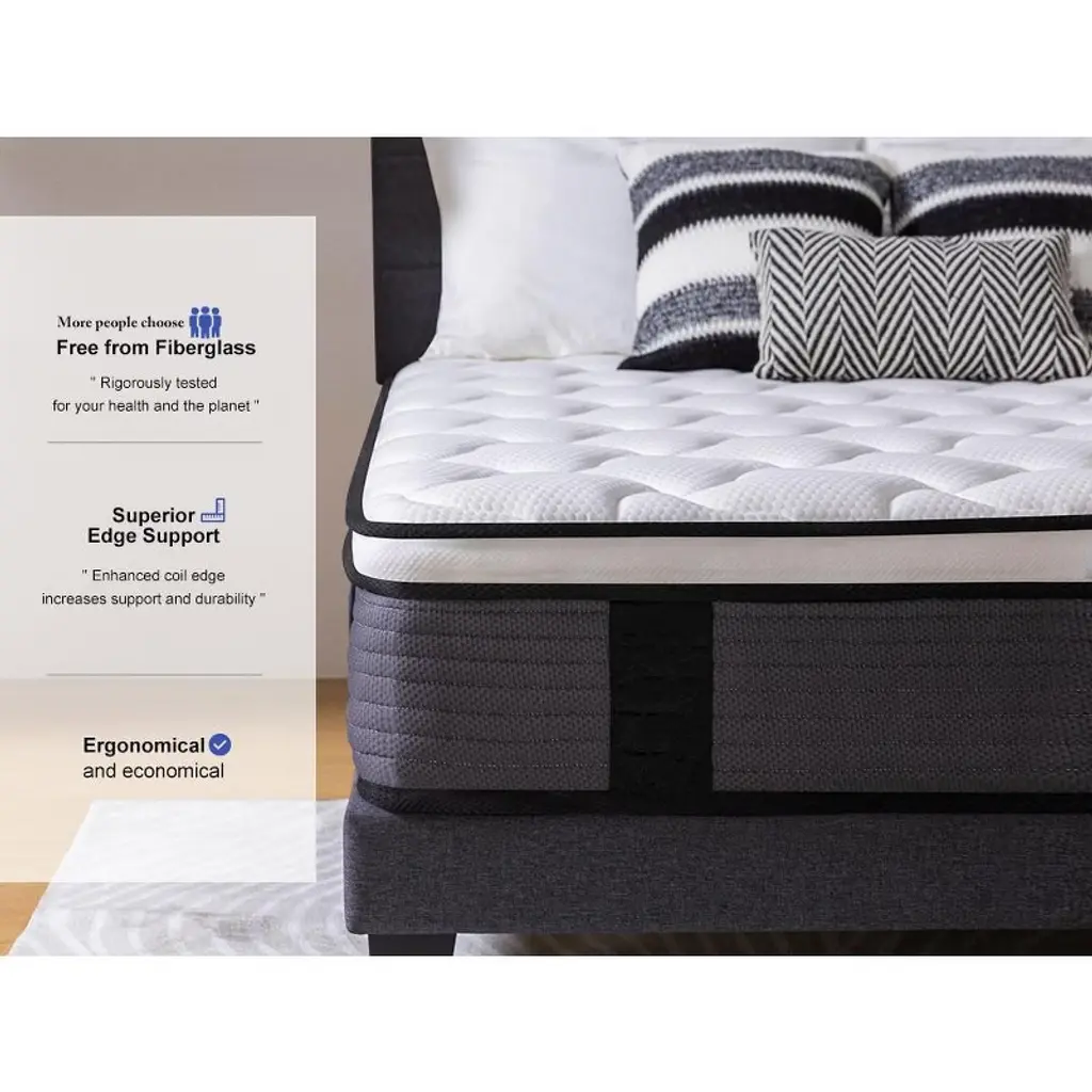 Paged 10 Inch Queen Size Hybrid Mattress Memory Foam Mattress With Breathable Cool Cover For Comfortable Sleep, White+gray