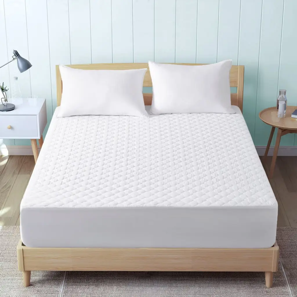 Upgrade your bedding with our quilted waterproof down alternative mattress protector ¡ª designed to provide enhanced comfort and superior protection. The mattress protector features a polyester cover with classic four-leaf quilting, adding a touch of elegance to your bedroom. The waterproof layer shields your mattress from spills, ensuring it stays fresh and clean. A 15" super-stretchy side skirt that securely fits mattresses up to 18" deep, keeping the protector firmly in place for a peaceful night's sleep. Machine washable for easy care, this versatile addition to your bedding is perfect for bedrooms, guest rooms, or dormitories.