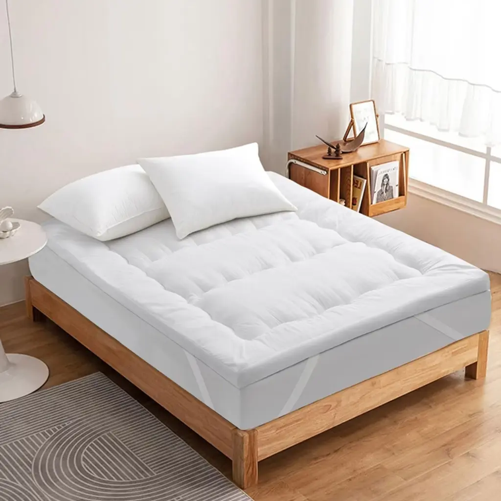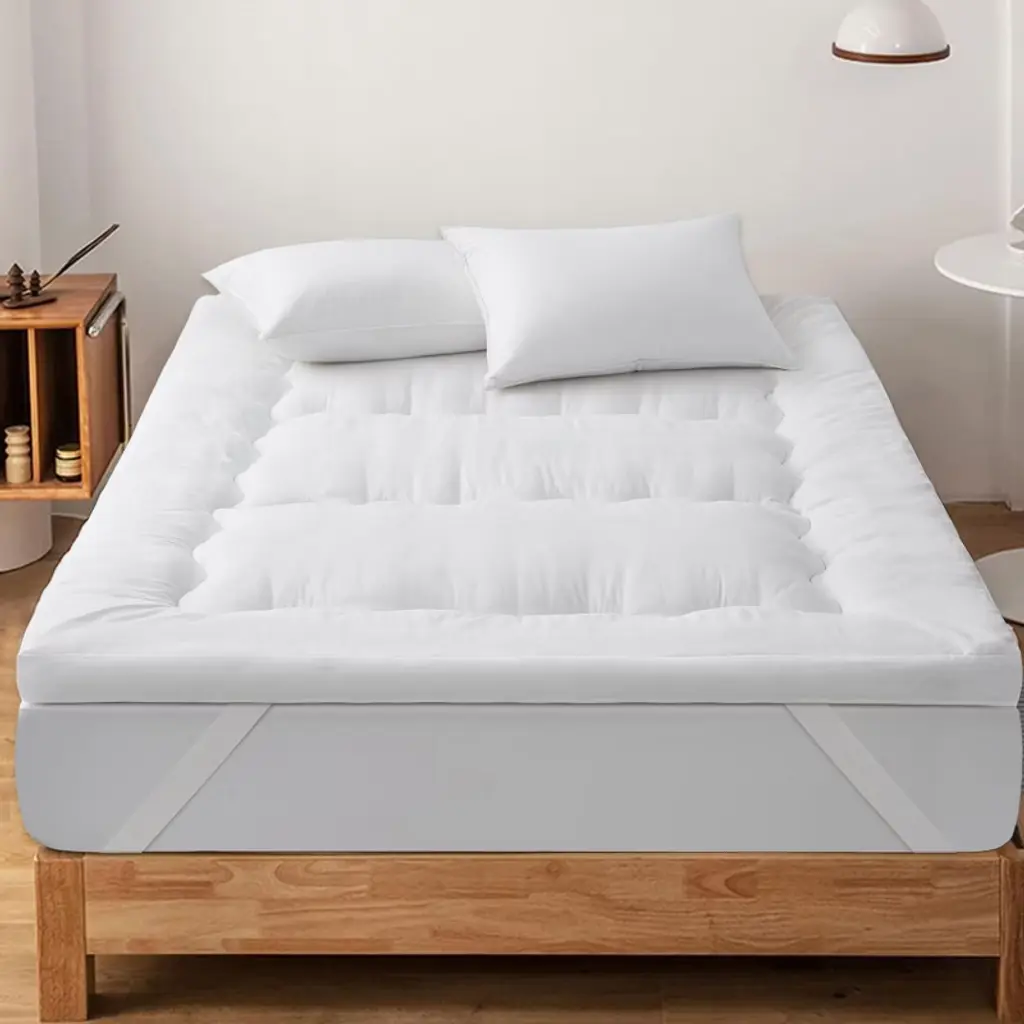 Upgrade your sleep experience with our luxurious 4" down alternative mattress topper. Crafted to deliver ultimate comfort, this plush topper features a soft microfiber surface. The elegant quilted pattern not only adds a stylish touch but also helps evenly distribute the filling for consistent comfort. Generously filled with plush polyester, this topper creates a cloud-like sleeping surface that cradles your body while reducing motion transfer. Designed with secure elastic straps, it stays firmly in place on mattresses up to 18" deep, ensuring a stable and uninterrupted rest.