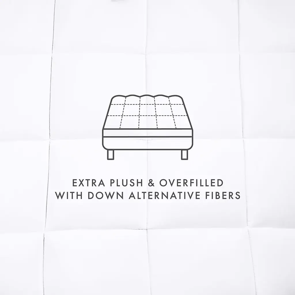Give your bed an extra cloud of comfort with this 2 inch ultra plush mattress topper. Generously filled with micro plush down alternative fiber, this pad adds amazing softness and comfort to your bed. The baffle box stitch design ensures even distribution and support. Premium yarns, twice as durable as cotton, are super soft to the touch.