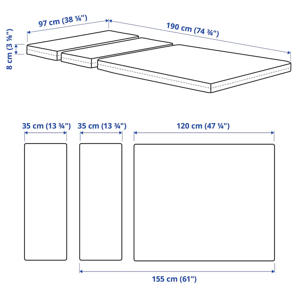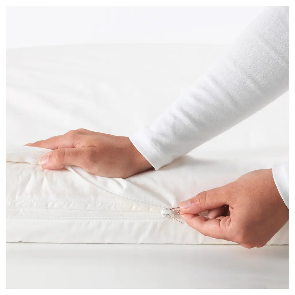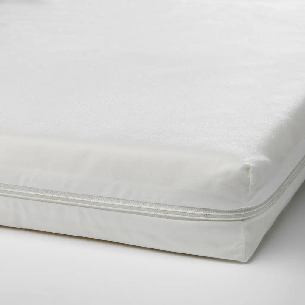 PLUTTEN Foam mattress for extendable bed 38 1/4x74 3/4 ". This mattress has the same, smooth surface on both sides. You can easily turn it over if you like. The cover can be wiped off. Child-safe zipper prevents children from opening the cover.