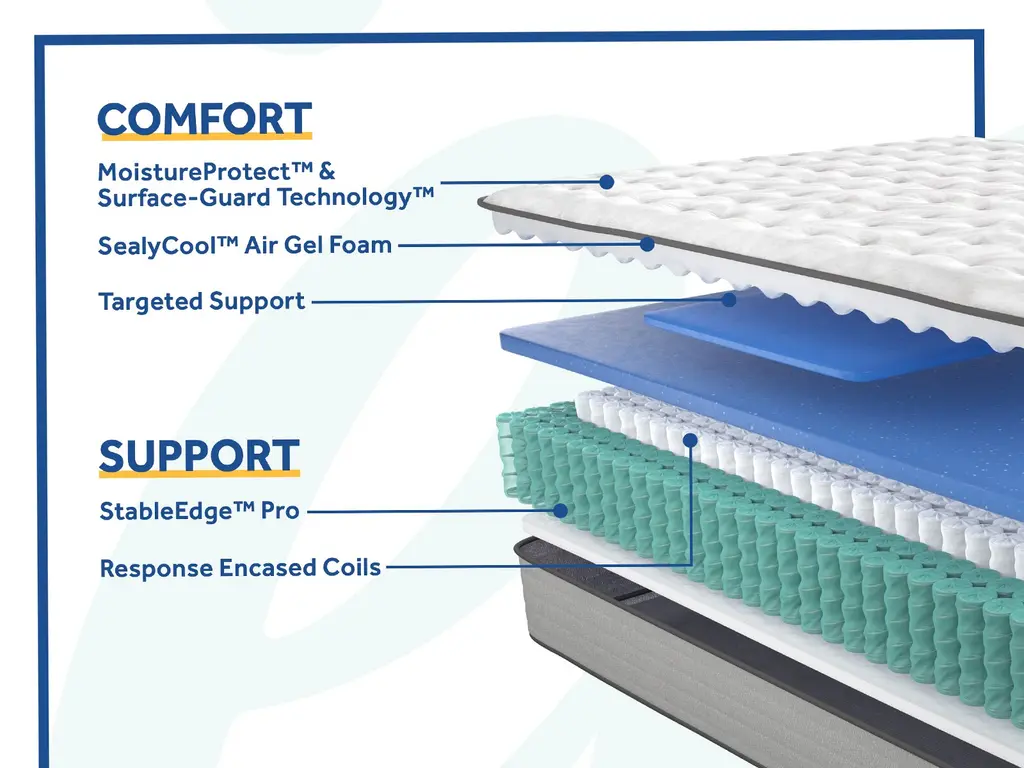 The Sealy® Posturepedic Summer Rose Firm mattress is an upgraded mattress perfect for stomach and side sleepers, with motion-reducing encased coils, targeted back and core support, and a reinforced edge for increased durability. The antibacterial, soft knit cover helps to keep you cool, and to keep your mattress protected.