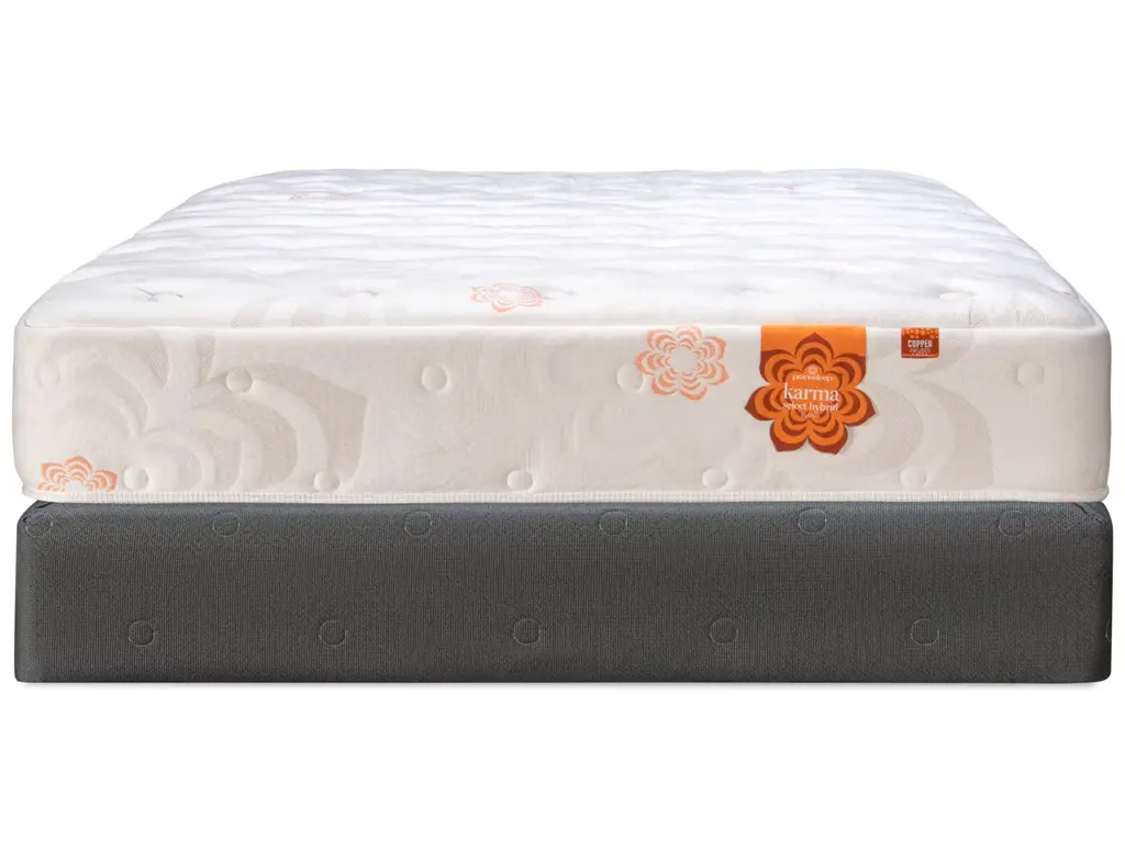 Karma Elite Hybrid Plush features superior raw materials, innovative-patented designs, along with luxurious comfort and support for all body types. Natural Copper infused Talalay Latex right on top has significant pressure relieving power. Additional comfort layers of Talalay Latex combined with the Full Body Comfort Coil provide a floating but supportive feel meant to provide rejuvenating sleep. A refreshingly cool cover, amazing pressure relief, and limited partner disturbance, everything you need to Sleep Deeply. Live Boldly.