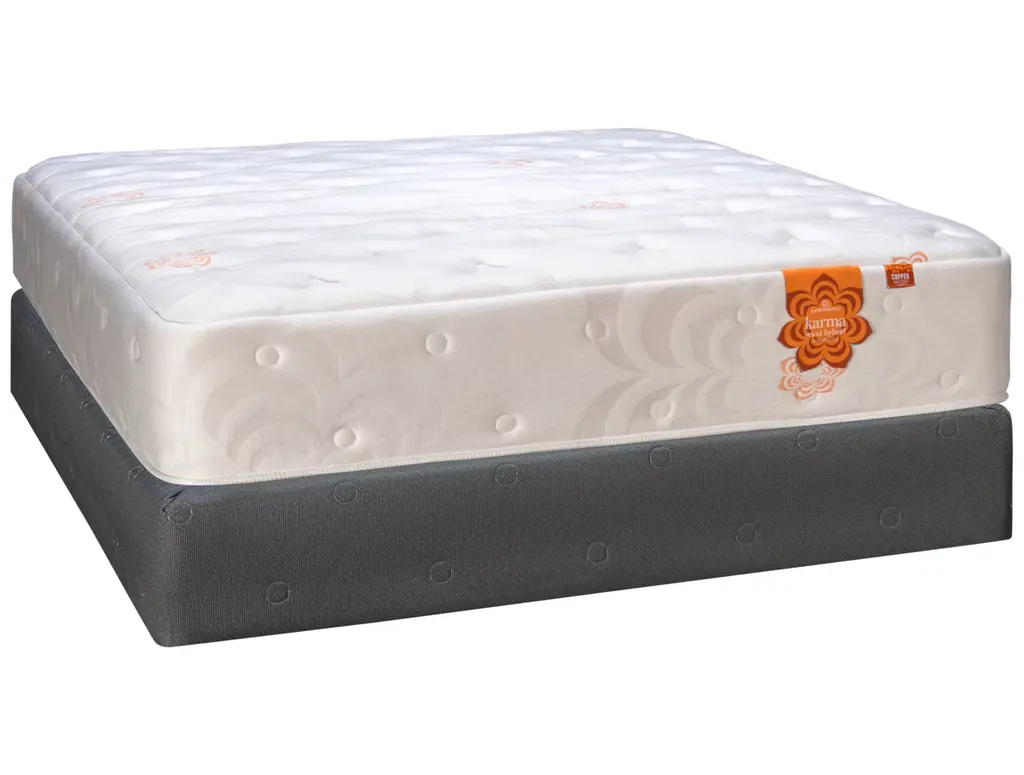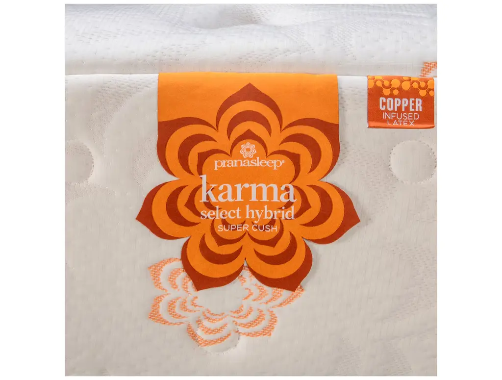 Karma Select Hybrid Super Cush mattress features superior raw materials, innovative-patented designs, along with luxurious comfort and support for all body types. Full Body Comfort Coil support system combined with Natural Copper infused Talalay latex lumbar support gives you the added pressure relief of natural latex with premium lumbar support. A refreshingly cool cover, amazing pressure relief, and limited partner disturbance, everything you need to Sleep Deeply. Live Boldly.