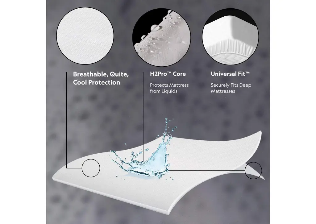 The Prime™ mattress protector features a hypoallergenic and a breathable, smooth fabric surface that sleeps comfortably and will not change the feel of the mattress. It also features the laboratory-certified H2Pro®liquid-proof membrane which creates a quiet, and breathable barrier against allergens and dust mites while allowing for airflow. The universal fit elastic ensures a secure fit for mattress depths of 6"-22". Pillow protectors are also available to create a healthy sleeping environment. Weight 25.000 lbs. (11.25kgs.)