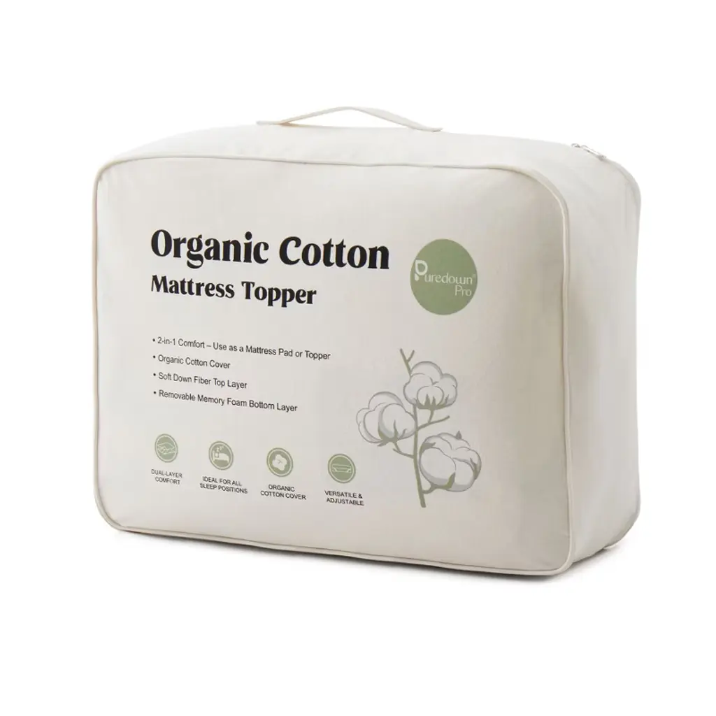 Puredown 2 Inch Organic Cotton Layered Memory Foam Mattress Topper, Twin