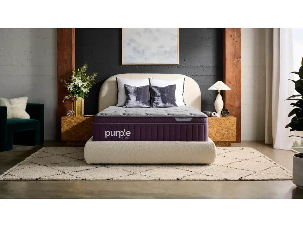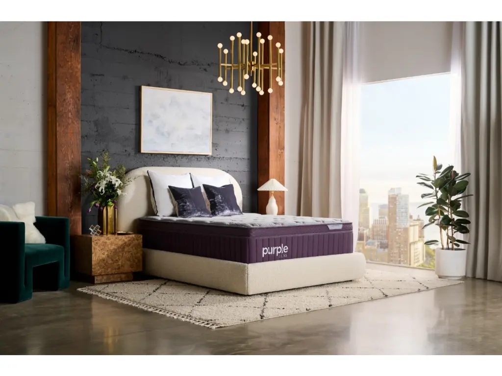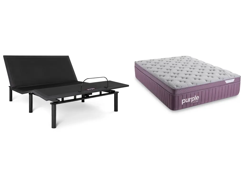 Step up your sleep with Purple Rejuvenate Plus, featuring an additional Active Response Foam layer that adapts to your movement, dual layers of Ultra Comfort Foam for breathability and durability, a Quilted Comfort Cover and overall temperature control with a soft feel. And the Purple Premium Plus Smart Base provides the ultimate in comfort with enhanced lumbar support and pillow tilt, presets to help you snooze, dual massage settings for the ultimate Zen, convenient underbed lighting and an easy-to-use app to manage it all.