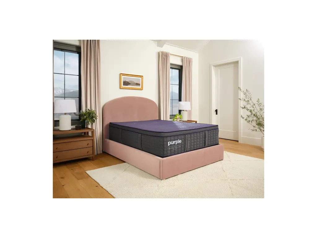 Experience unparalleled comfort with the Purple Restore Plus Hybrid Soft 13" California King Mattress. This plush mattress is designed to provide a restful night's sleep with its innovative materials and thoughtful construction. The grey and purple color scheme adds a touch of modern style to your bedroom.