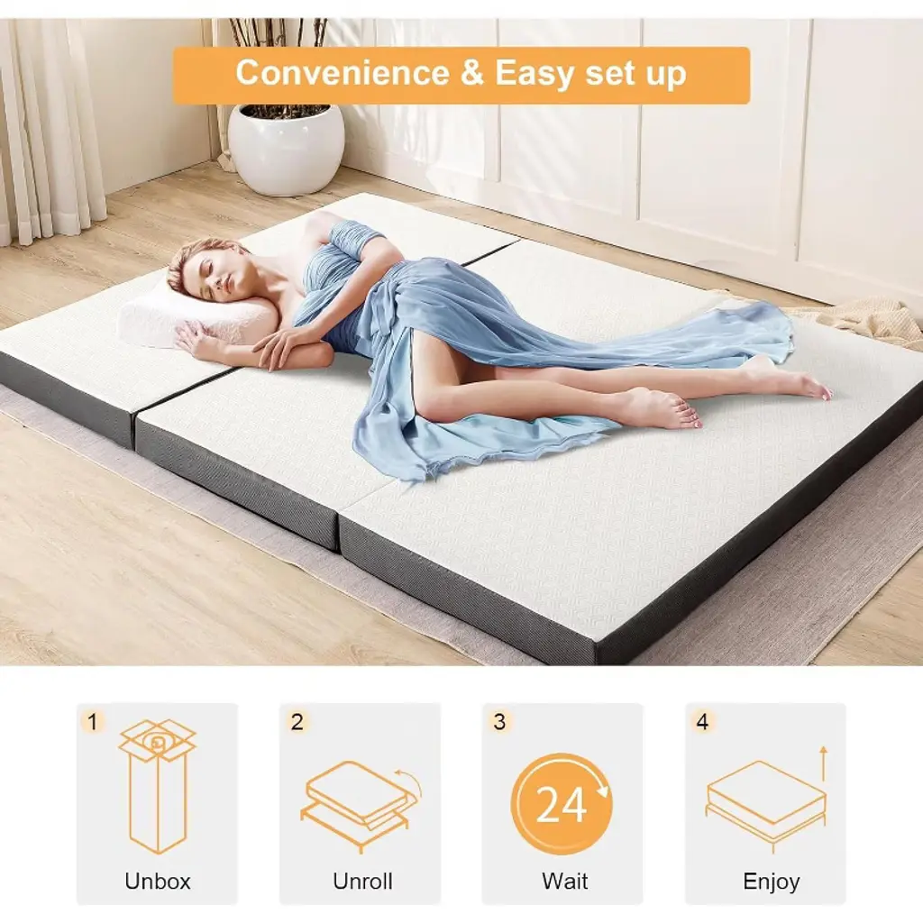 Rbied Folding Portable Mattress, 3 Inch Tri-folding Memory Foam Mattress Foldable Mattress With Washable Cover, 75" X 38" X 3"