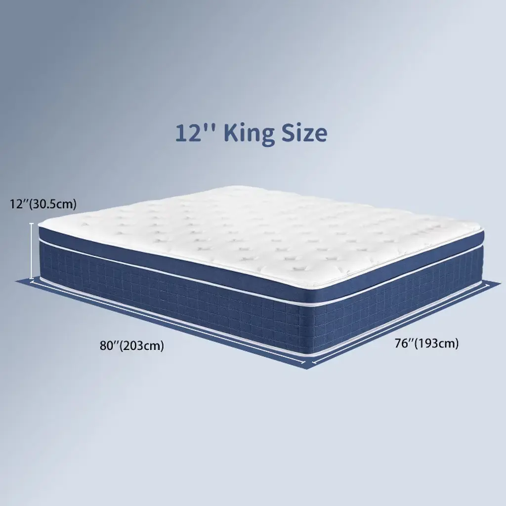 Resenkos King Size Boxed Mattress With 12-inch Memory Foam & Hybrid Pocketed Spring Support - Medium Firm Feel, Motion Isolation & Edge Support, White