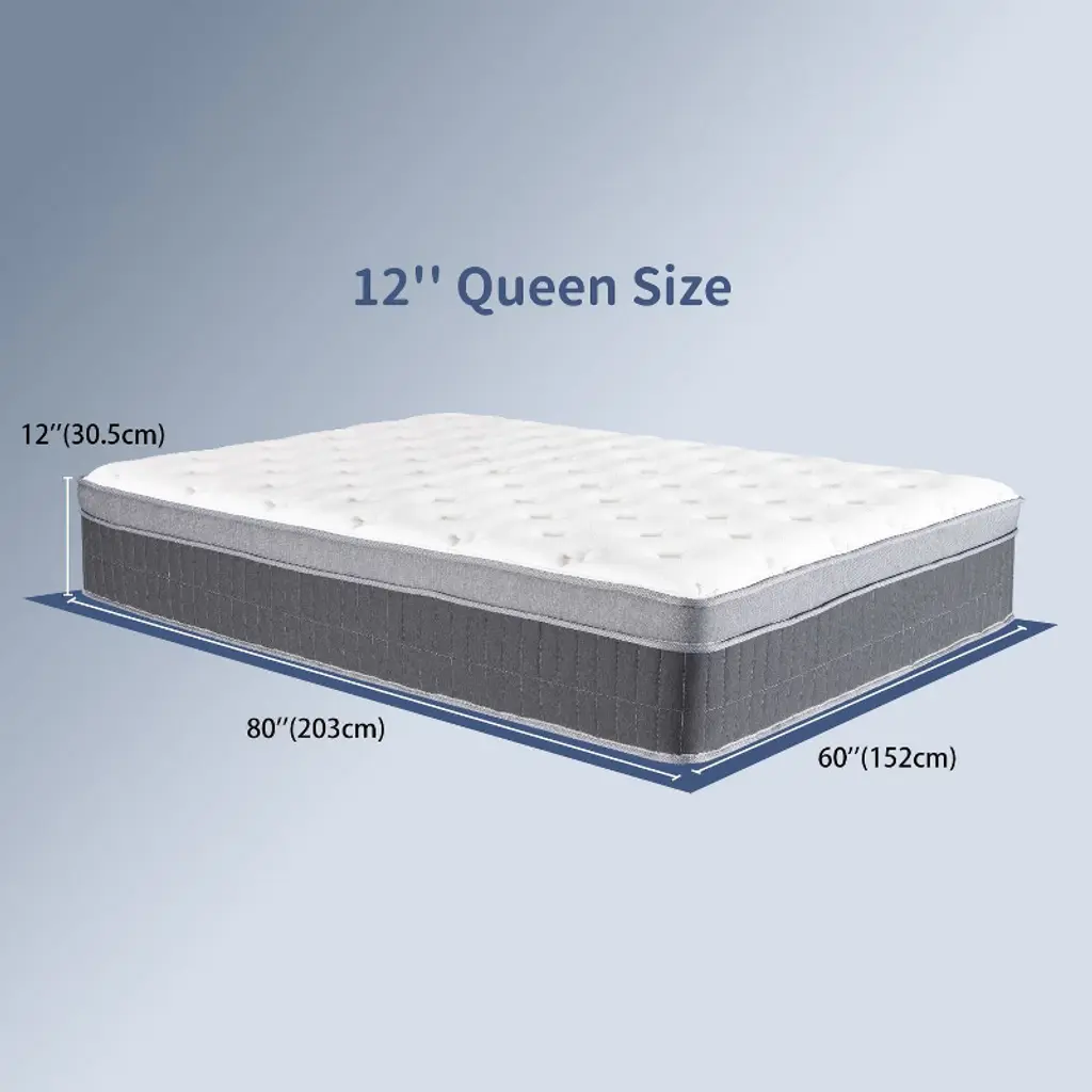 Resenkos Queen Size Memory Foam Hybrid Mattress With Pocketed Springs, 12 Inch Medium Firm, Motion Isolation Edge Support, Light Gray And Gray