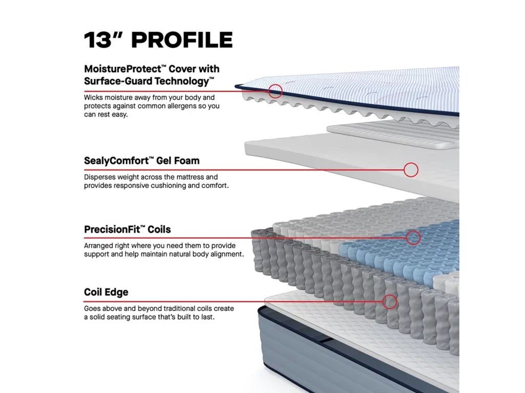 The Sealy Posturepedic® Level features our exclusive PrecisionFit™ Coils, arranged right where you need them to help maintain natural body alignment and reduce nagging Bed Aches™.