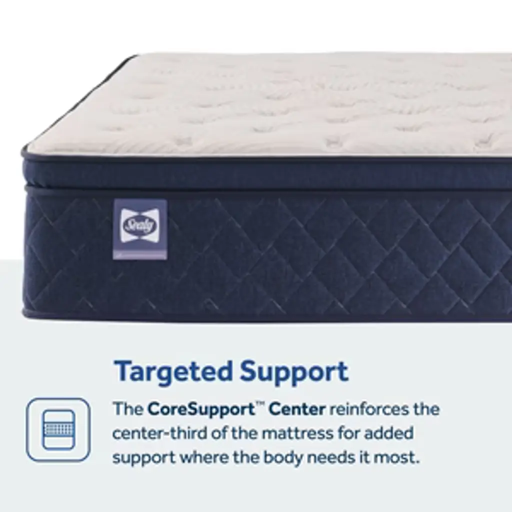 Sink into plush comfort with the Sealy Safa Park Soft Pillowtop Mattress. Multiple foam layers, including SealyComfort Gel Foam and Air Foam, provide cushioning and airflow. Individually encased SealyStability™ coils offer targeted support, while StableEdge™ reinforcement and a moisture-wicking knit cover ensure durability and cool, dry sleep.