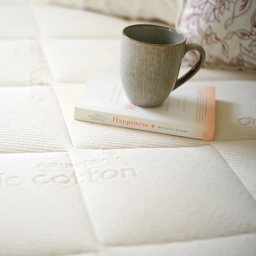 Naturepedic’s Serenade Mattress offers an excellent night’s sleep on natural, healthy materials. Featuring premium organic latex for pressure-point relief and encased coil support that gently contours to your body, this mattress’ hybrid design boasts no polyurethane foam, flame retardants, adhesives or harmful chemicals whatsoever. Instead, the Serenade utilizes 100% GOTS-certified cotton and wool, as well as GOTS-approved latex.