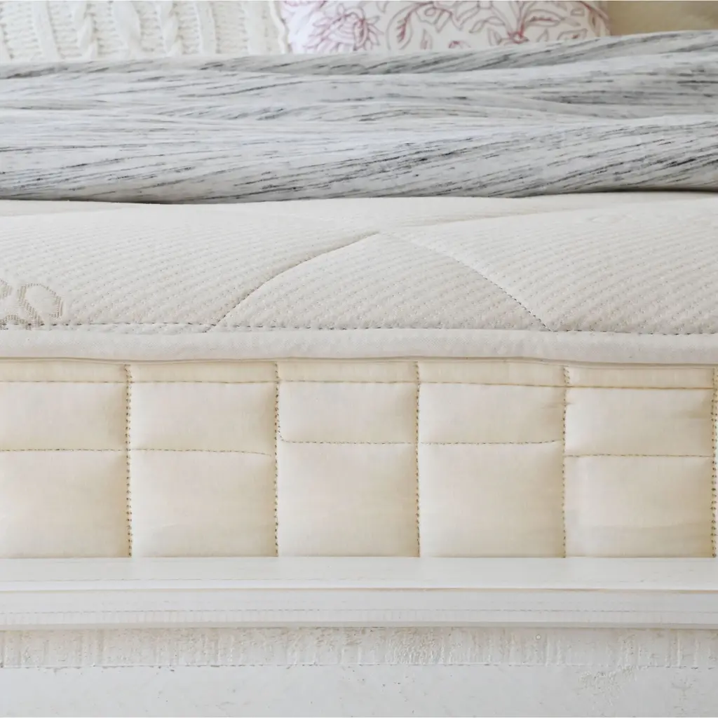 Naturepedic’s Serenade Mattress offers an excellent night’s sleep on natural, healthy materials. Featuring premium organic latex for pressure-point relief and encased coil support that gently contours to your body, this mattress’ hybrid design boasts no polyurethane foam, flame retardants, adhesives or harmful chemicals whatsoever. Instead, the Serenade utilizes 100% GOTS-certified cotton and wool, as well as GOTS-approved latex.
