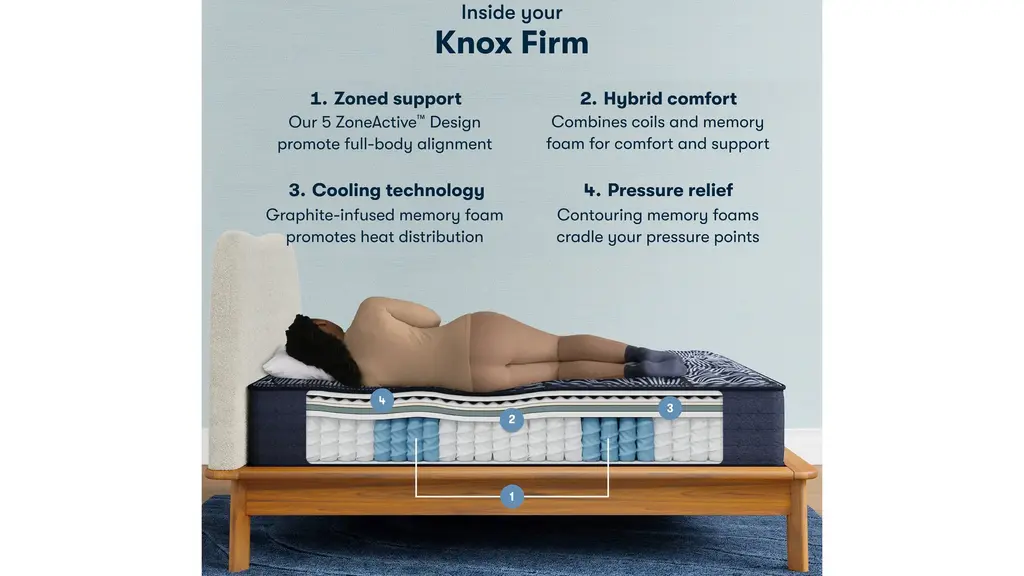 A great choice for those who prefer a classic, quilted feel, experience premium support and perfect sleep with the Serta Quilted Perfect Sleeper X Knox firm mattress. It features 5 support zones for full-body spinal alignment with responsive coils and graphite-infused memory foam, plus cooling technology. Extraordinary sleep is possible, with Serta Quilted Perfect Sleeper X.