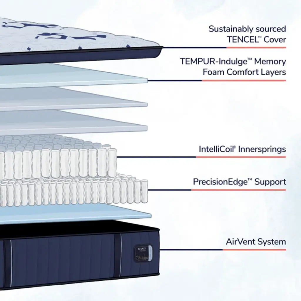 Renowned for their quality mattresses, Stearns & Foster promises comfort, support and cool sleeping with its Estate collection. Great for sleepers who prefer a cushioned sleeping experience, the 15-inch mattress indulges with a firm-yet-soft pillow top. Developed by the sleep experts at Tempur-Pedic, the layered TEMPUR-Indulge memory foam and coil innerspring construction provides the perfect combination of durability, pressure relief and a unique weightless-yet-supported feel for every type of sleeper. To ensure a cool, restful sleep, an air vent system allows air to move out of the mattress, increasing airflow and pulling warm air away from your body throughout the night.