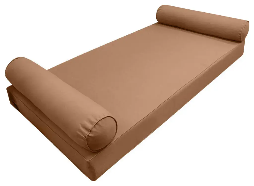 • Style-5 Full Size 3 PC Pipe Edge Mattress Bolster Cover Set ONLY• • MATTRESS AND INSERTS NOT INCLUDED• • Fully Encase Cover with Hidden Zipper• 1 x Full Fitted Sheet Cover Only: 75" x 54" x 6"• 2 x Bolster Pillow Cover Only: 52" x 8"• Color: AD104• Edge Trim: Piped Edge (Same color)• Fabric: 230 Gram Polyester Upholstery• Hidden Zipper• Water Repellent • Not Water Proof• • Tips: Please cover or store cushion pillow in rainy season• Cleaning: Soap clean and rinse off with water hose. Outdoor durable!• Quantity: 1