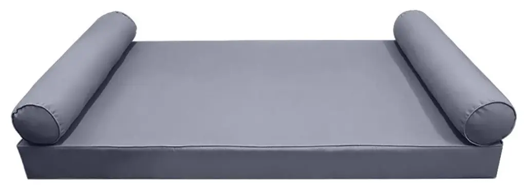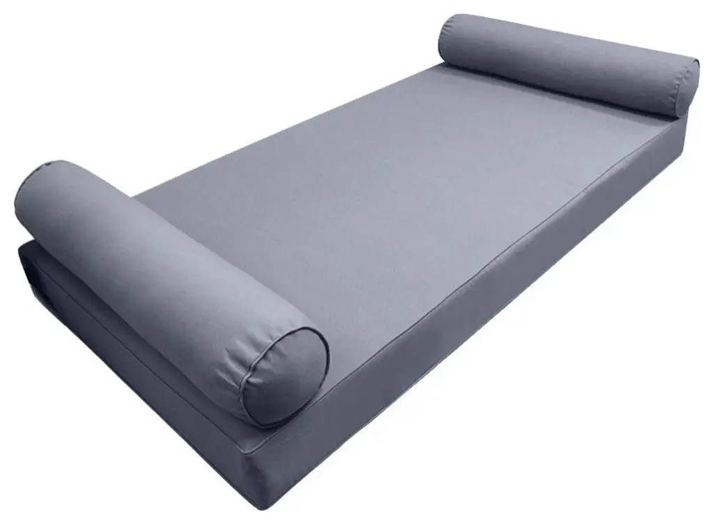• Style-5 Queen Size 3 PC Pipe Edge Mattress Bolster Cover Set ONLY• • MATTRESS AND INSERTS NOT INCLUDED• • Fully Encase Cover with Hidden Zipper• 1 x Queen Fitted Sheet Cover Only: 80" x 60" x 6"• 2 x Bolster Pillow Cover Only: 58" x 8"• Color: AD001• Edge Trim: Piped Edge (Same color)• Fabric: 230 Gram Polyester Upholstery• Hidden Zipper• Water Repellent • Not Water Proof• • Tips: Please cover or store cushion pillow in rainy season• Cleaning: Soap clean and rinse off with water hose. Outdoor durable!• Quantity: 1