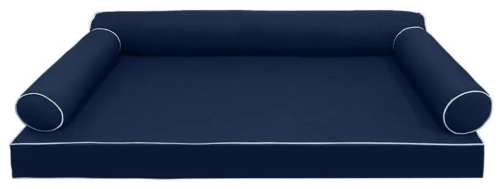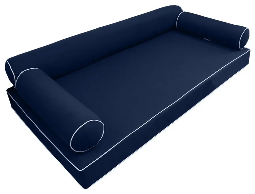 • Style-6 Twin Size 4 PC Contrast Pipe Trim Mattress Bolster Cover Set ONLY• • MATTRESS AND INSERTS NOT INCLUDED• • Fully Encase Cover with Hidden Zipper• 1 x Twin Fitted Sheet Cover Only: 75" x 39" x 6"• 2 x Bolster Pillow Cover Only: 27" x 8"• 1 x Bolster Pillow Cover Only: 73" x 8"• Color: AD101• Edge Trim: Piped Trim (contrast color)• Fabric: 230 Gram Polyester Upholstery• Hidden Zipper• Water Repellent • Not Water Proof• • Tips: Please cover or store cushion pillow in rainy season• Cleaning: Soap clean and rinse off with water hose. Outdoor durable!• Quantity: 1
