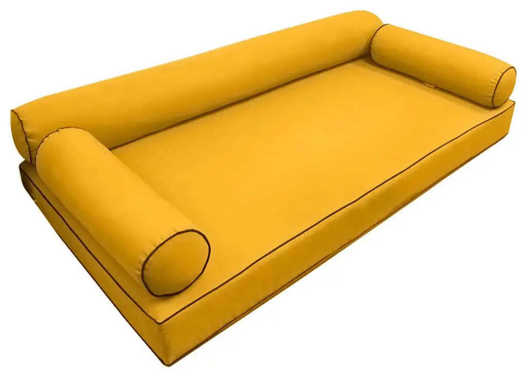 • Style-6 Twin Size 4 PC Contrast Pipe Trim Mattress Bolster Cover Set ONLY• • MATTRESS AND INSERTS NOT INCLUDED• • Fully Encase Cover with Hidden Zipper• 1 x Twin Fitted Sheet Cover Only: 75" x 39" x 6"• 2 x Bolster Pillow Cover Only: 27" x 8"• 1 x Bolster Pillow Cover Only: 73" x 8"• Color: AD108• Edge Trim: Piped Trim (contrast color)• Fabric: 230 Gram Polyester Upholstery• Hidden Zipper• Water Repellent • Not Water Proof• • Tips: Please cover or store cushion pillow in rainy season• Cleaning: Soap clean and rinse off with water hose. Outdoor durable!• Quantity: 1