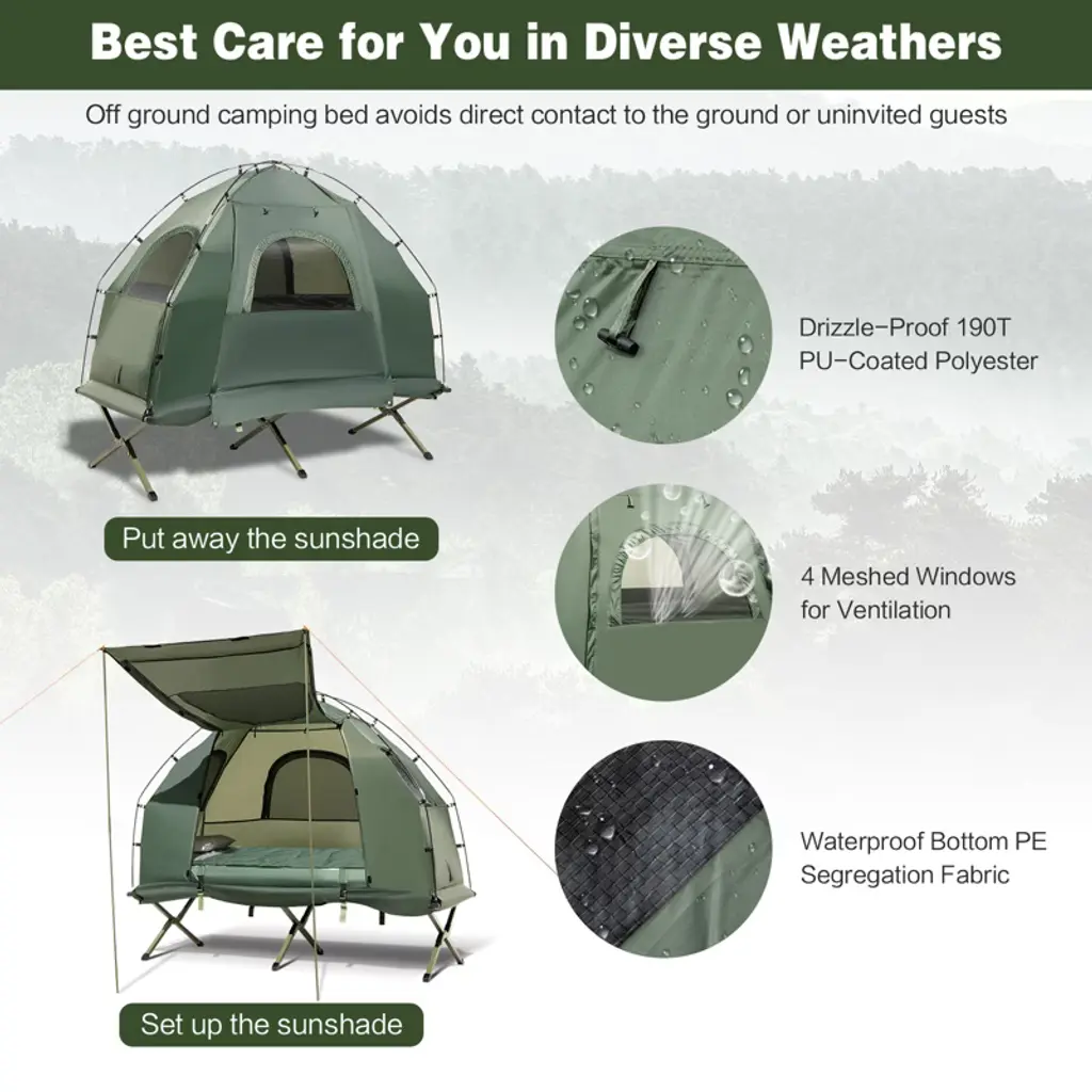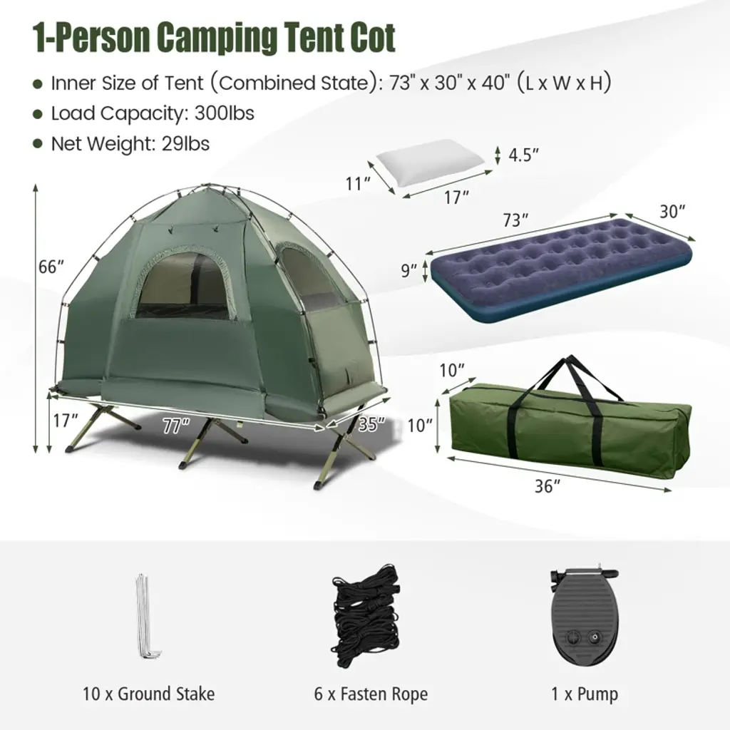 Tangkula 1-person Folding Camping Tent Cot Portable Pop-up Tent W/sleeping Bag & Air Mattress For Outdoor
