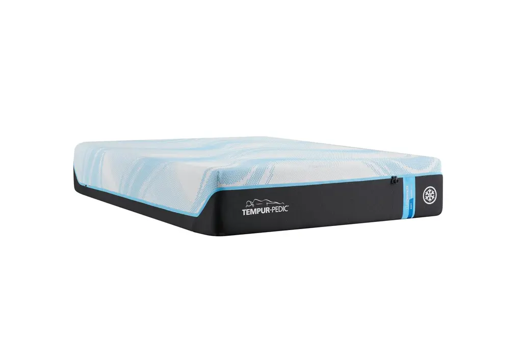 Experience the ultimate in comfort with the Tempur-Pedic Luxebreeze 2.0 13" Soft Queen Mattress, made with high-quality memory foam that conforms to your body. The mattress is covered in a white fabric and has a soft comfort level.