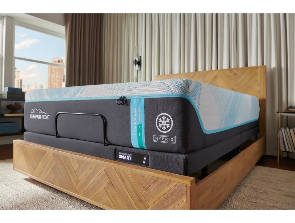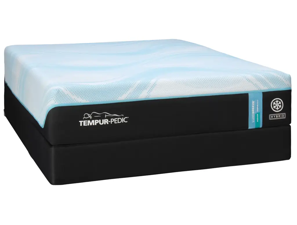 Tempur-pedic LuxeBreeze Medium Hybrid mattress optimizes all the best technology and innovation Tempur-pedic® offers. Want to sleep up to 10 degrees cooler? LuxeBreeze® has a 4-level system of cutting-edge cooling materials that work together from cover to core to keep you cooler all night long. PureCool+™ and heat diffusing layers on top of Ventilated Advanced Relief Tempur® foams envelope and surround you with the most luxurious cooling pressure relieving experience that only Tempur-pedic® can deliver; total cooling for total comfort. Cooler All Night Long.®