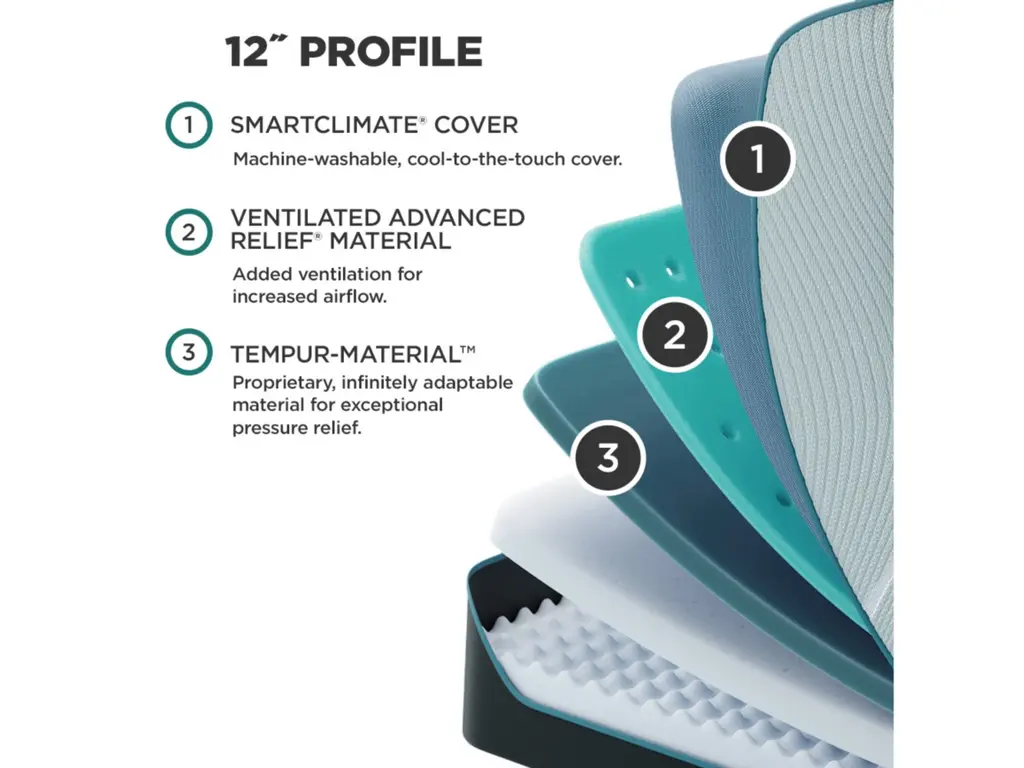 The TEMPUR-ProAdapt® series is expertly designed to deliver exceptional pressure relief and support. Its combination of one-of-a-kind ventilated TEMPUR-Material™ and Advanced Relief® Material precisely adapts to the unique contours of your body all night long.