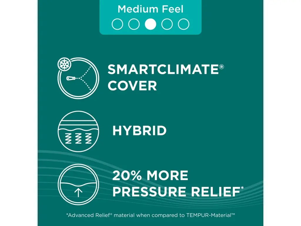 The TEMPUR-ProAdapt® series is expertly designed to deliver advanced pressure relief and support. Its combination of one-of-a-kind ventilated TEMPUR-Material™ and Advanced Relief™ Material precisely adapts to the unique contours of your body all night long.