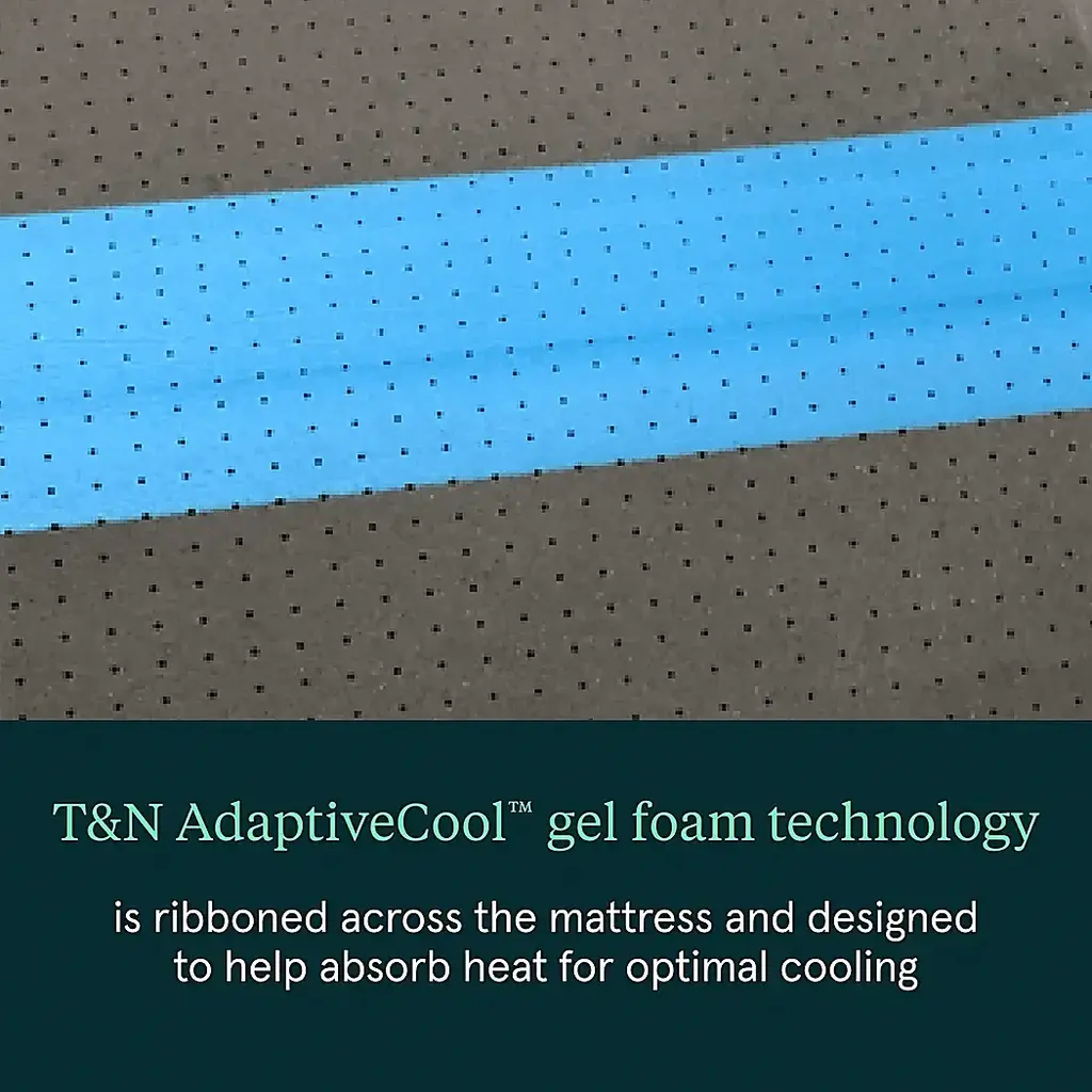 Firm 1000-density individually wrapped coils offer responsive pressure relief and upgraded support. Foam-encased seating edge provides corner-to-corner edge support to eliminate sleep partner disturbances. The cool-to-the-touch cover and T&N AdaptiveCool gel foam technology is designed to help absorb heat for a cooler nights sleep. A Micro Diamond memory foam upgrade is designed to help transfer heat away from the body for a comfortable rest.