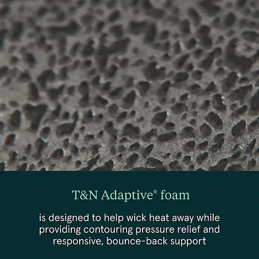 Plush 1000-density individually wrapped coils offer responsive pressure relief and upgraded support. Foam-encased seating edge provides corner-to-corner edge support to eliminate sleep partner disturbances. The cool-to-the-touch cover and T&N AdaptiveCool gel foam technology is designed to help absorb heat for a cooler nights sleep. A Micro Diamond memory foam upgrade is designed to help transfer heat away from the body for a comfortable rest.