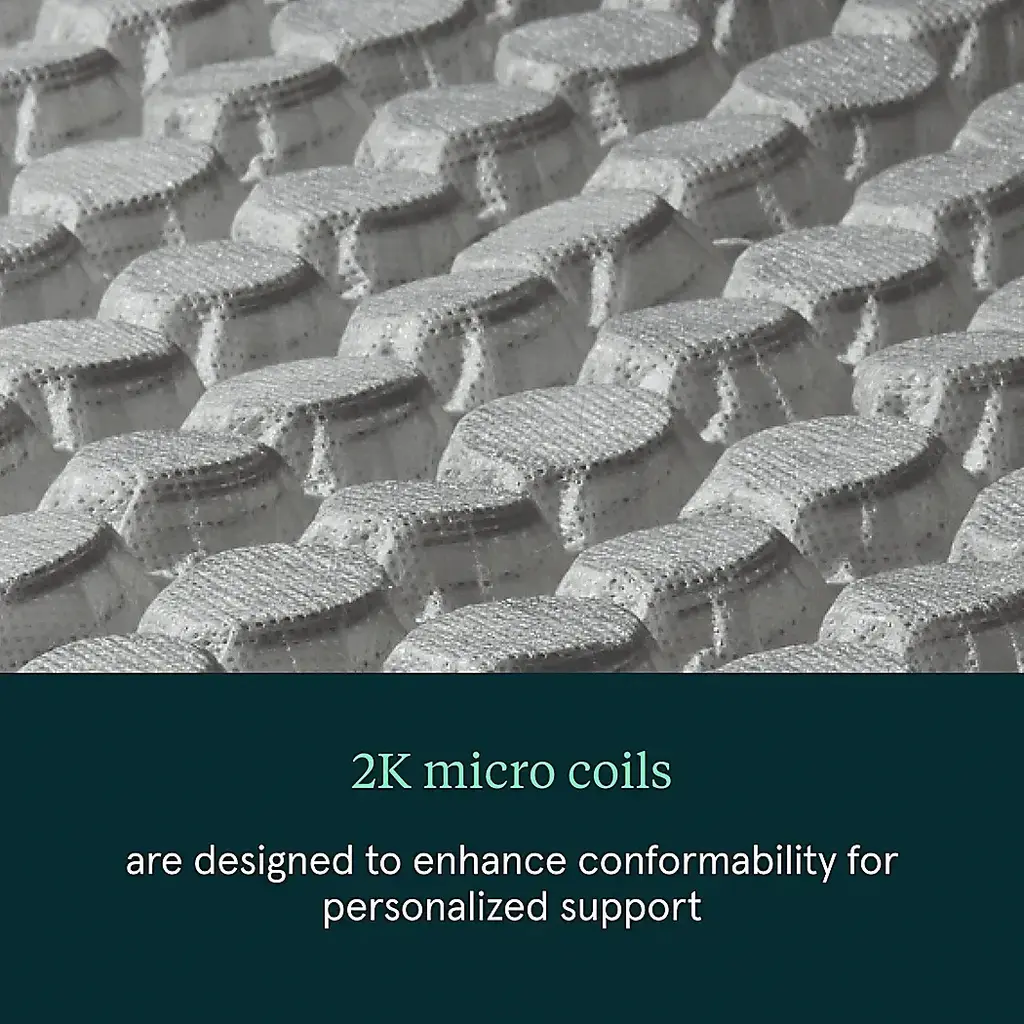 Plush 1000-density individually wrapped coils with body-conforming Micro coil upgrade offer responsive pressure relief and Tuft & Needle's most premium bounce-back support. Foam-encased seating edge provides corner-to-corner edge support to eliminate sleep partner disturbances. The cool-to-the-touch cover and T&N AdaptiveCool gel foam technology is designed to help absorb heat for a cooler nights sleep. A Micro Diamond memory foam upgrade is designed to help transfer heat away from the body for a comfortable rest. Conveniently raise or lower the head of your mattress using the RTG Sleep 2900 adjustable base with wireless remote control.