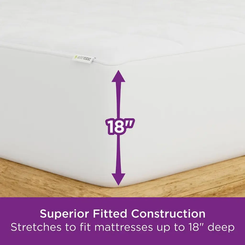 Twin Ultimate Protection And Comfort Allergy Protection Mattress Pad - Allerease: Hypoallergenic Topper, 240 Thread Count, Fits 18" Depth