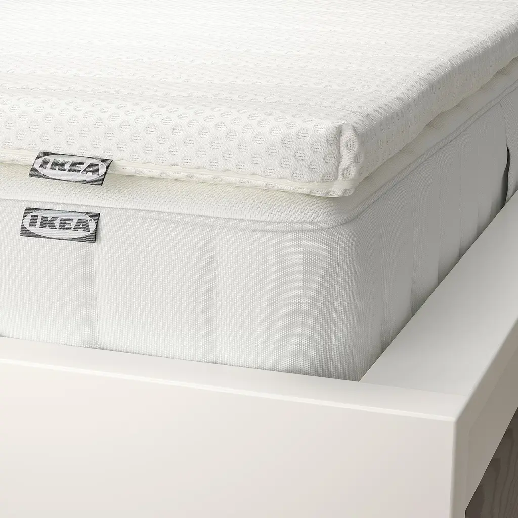 VALEVÅG Mattress and mattress pad - medium firm white/Nisseholm white Queen. Pocket springs respond independently without transferring motion and follow your movements to support your spine and joints. Both the mattress and mattress pad are roll-packed to make them easier to bring home.