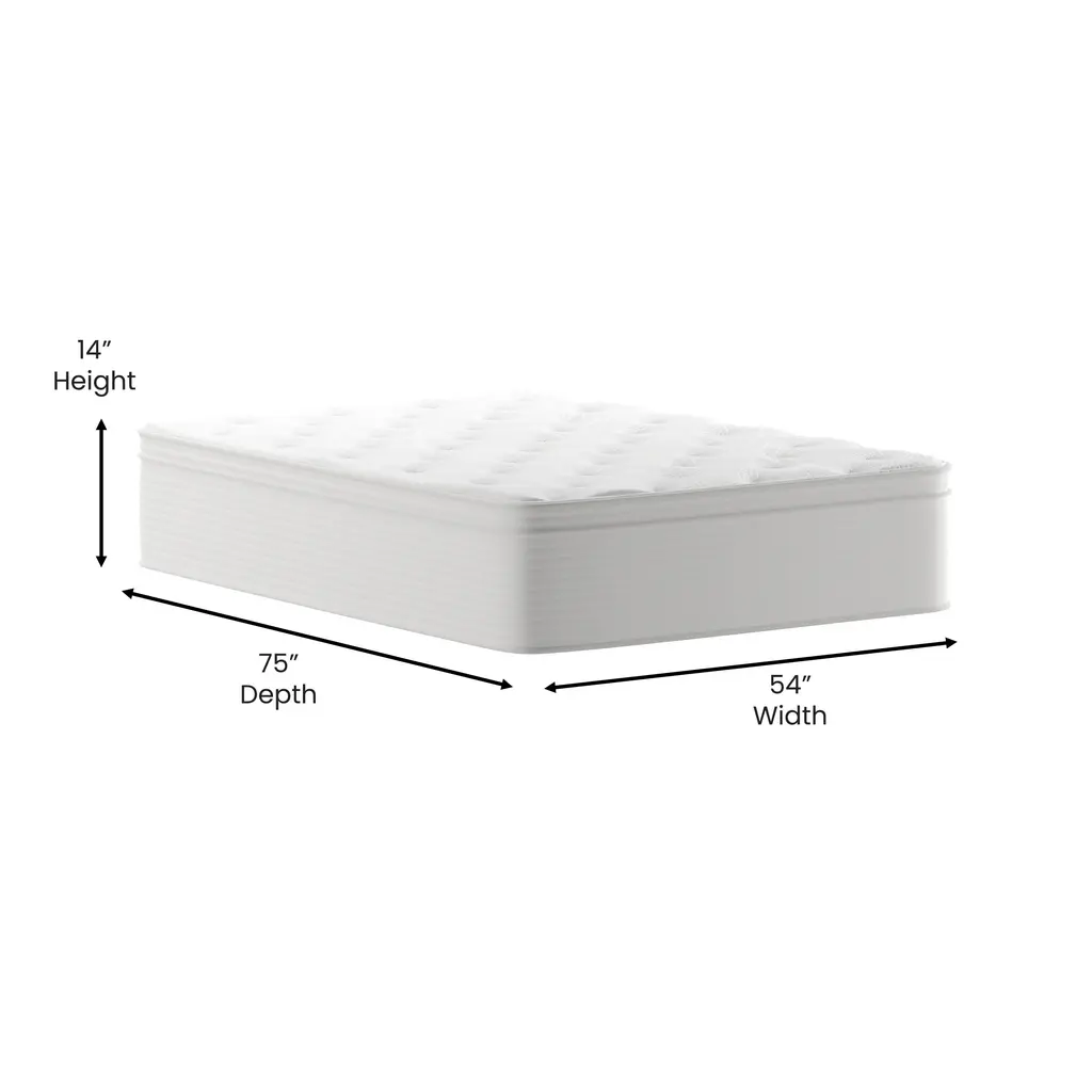 Whether you're a hotel, small B&B or shopping for your vacation or short term rental properties, everyone will get the luxurious nights sleep they deserve with this 14" luxe edition memory foam and pocket spring hybrid Euro top mattress. From top to bottom, this mattress is crafted to give the best sleep experience possible. Breathable knitted fabric covers the padded top layer and is soft to the touch while layers of high density foam and memory foam atop individually wrapped pocket springs contour to any body type for pressure point relief. Designed for safety, performance, and durability, as well as comfort, the foam is CeritPUR-US Certified to ensure indoor air quality won't be compromised while the reinforced edges prevent side sagging to help maintain the look and feel of this mattress. Versatility is another great aspect of this upscale mattress that may be placed on a trundle bed, platform bed or adjustable bed frame, with no box spring needed. However, when using with a standard bed frame a box spring or other foundation is required. Arriving compressed for easy handling, this mattress in a box is ready to be enjoyed as soon as it is unpackaged making it ideal for commercial establishments as well as busy households. Please allow 48-72 hours for full expansion of your new mattress.